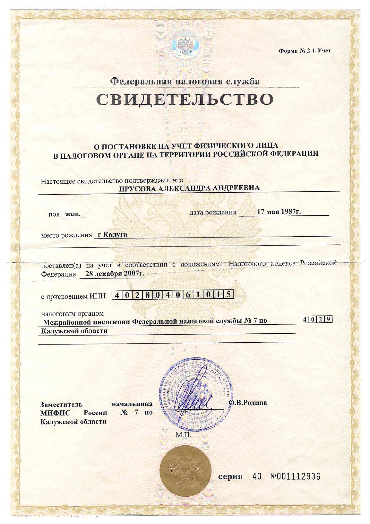 ИНН: 402804061015
